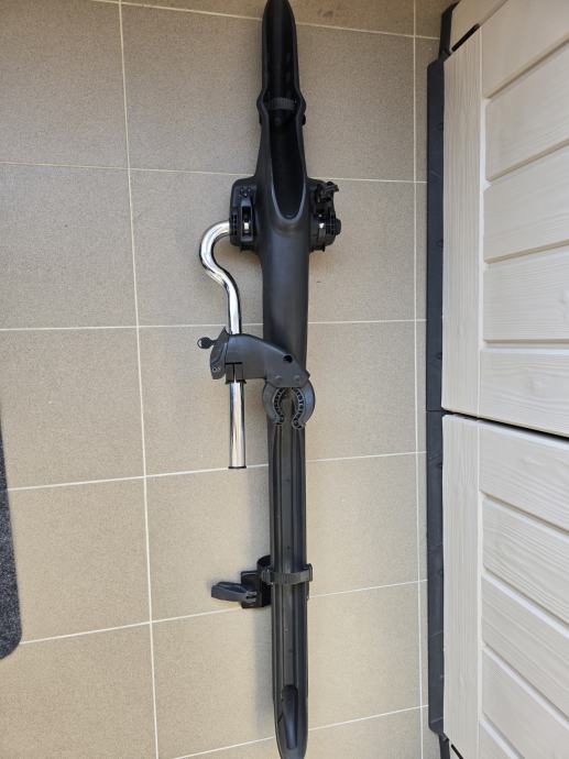 Nosač s profiliranim ležištem koji čvrsto drži kotače. Bicikl stoji u uspravnom položaju. Kada je bicikl postavljen na držač rame, držač bicikla je zaključan za osnovne nosače. Zaključavanjem bicikla zaključava se i krovni nosač.