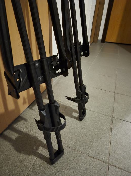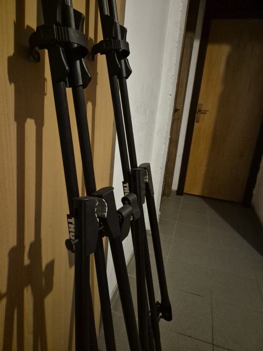 Krovni nosači THULE za kvadratne poprečne šipke. Jako malo korišteni, u odličnom stanju, zaključavanje. Svaki ima svoj ključ. Prodajem 2 komada. Cijena po komadu 35€ , komplet 60€