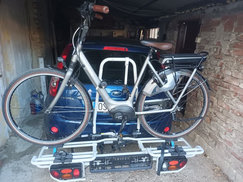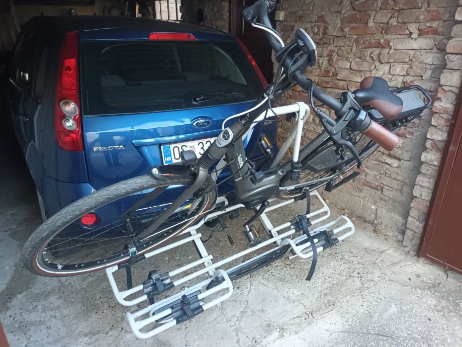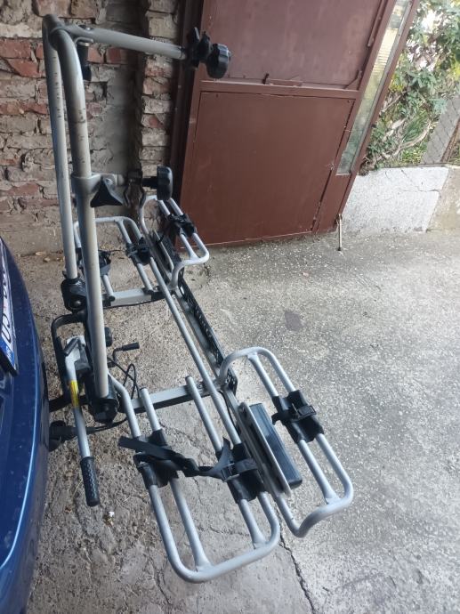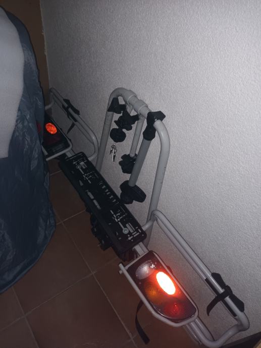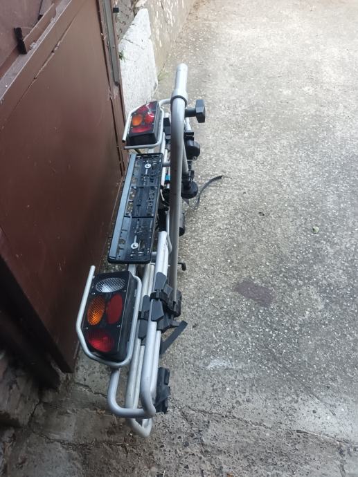 Prodajem nosač za 3 bicikla koji se montira na kuku njemačke proizvodnje Eufabe. Max nosivost 80kg. Masa samog nosaca cca 15kg. Ima 13 pinski prikljucak za signalizaciju. Ima mogucnost nagiba nosaca da se mogu otvoriti vrata prtljaznika. Ima 2 kljuca za zakljucavanje kuke i drzaca. Signalizacija ispravna te su sve gurtne i pricvrsnice ispravne. Pri skladistenju zauzima malo prostora.