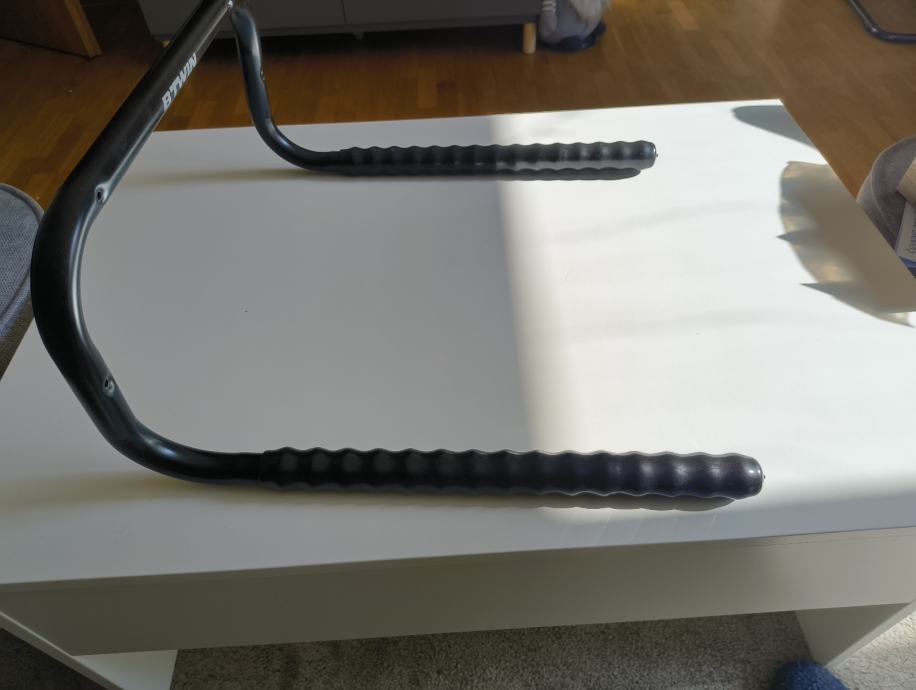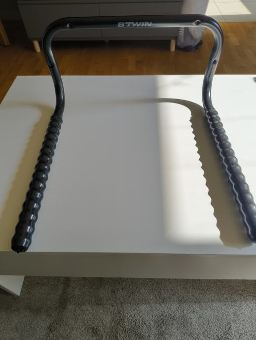 Prodajem novi zidni nosač za bicikl marke B'Twin. Radi se o metalnom nosaču crne boje koji se montira na zid i služi za pohranu bicikla. Hvatišta su obložena gumenom zaštitom kako bi se spriječilo oštećenje bicikla pri odlaganju. Nosač je nekorišten.