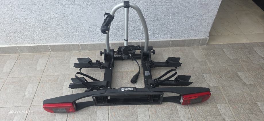 Prodajem nosač za dva bicikla Njemacke marke Westfalija.Nosač je u odličnom stanju,sve čitavo i funcionalno.Može se sklopiti te lako spremiti u prtljažnik.