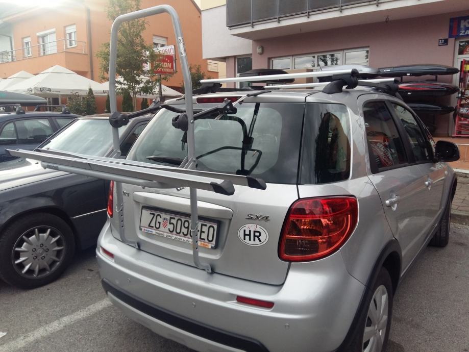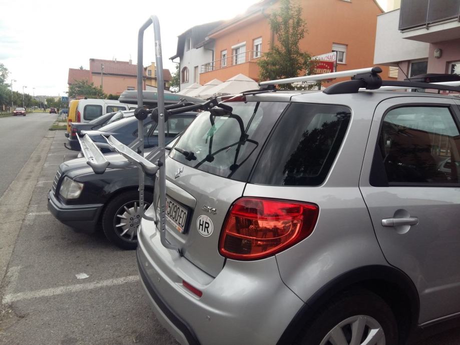 Nosač za 3 bicikla. Imam i Thule torbu/kutiju koja se može montirati na nosač pa se koristi za dodatne stvari. Thule torba ide za 200 EUR.