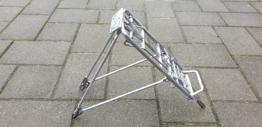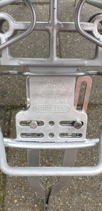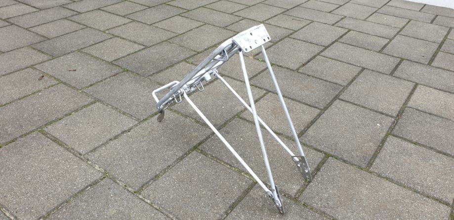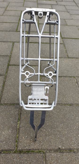 Prodajem Pletscher Athlete stražnji nosač, deklarirane nosivosti 25 kg, kompatibilan sa 26" i 28" biciklima. Aluminijski nosač težine 830 grama i čvrste opruge, očišćen od oksidacije i spreman za bojanje. Pripremite bicikl za nadolazeće ture! Cijena novog na bike24 je bila cca 40 €. U kompletu sa montažnim setom koji dođe dodatnih 6 €. Moja poštarina za Hrvatsku.