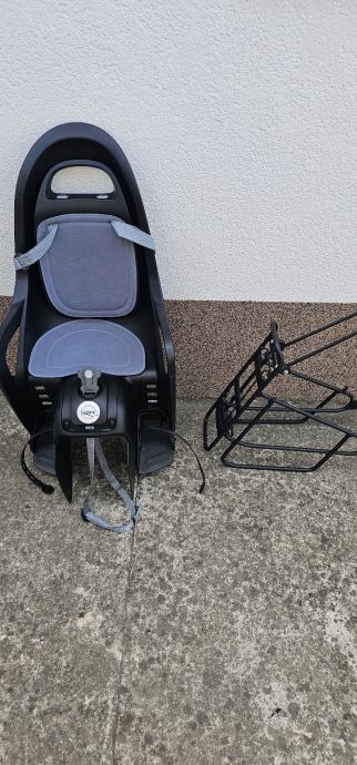 Prodajem dječju sjedalicu za bicikl crno-sive boje s pripadajućim nosačem. Sjedalica ima udobno sjedište i sigurnosne remene za dijete, dok je nosač čvrste metalne konstrukcije.