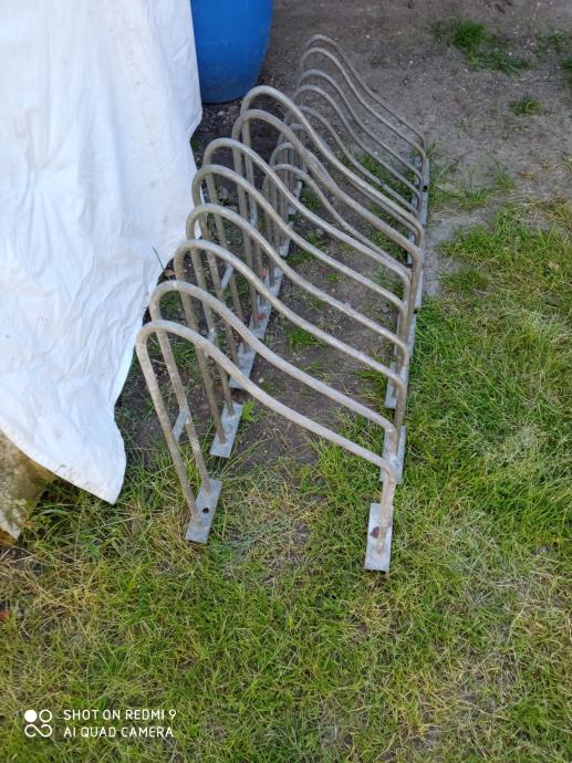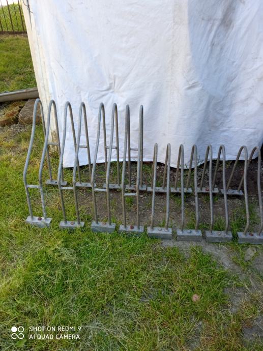 Prodajem stalke za bicikle. Stalci su od punog pocinćanog željeza. Ima dvije vrste kao na slici. Učvršćuju se pojedinaćno. 4 komada su veći i 4 komada manji. Cijena je po komadu. Na poruke ne odgovaram.