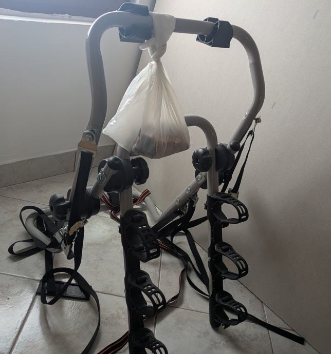 Nosač korišten doslovce jednom i stoji godinama jer ne paše na novi auto, za koji imam krovni.. Sa svim gumicama i adapterima koji su došli u pakiranju. Tako da dolazi složen.