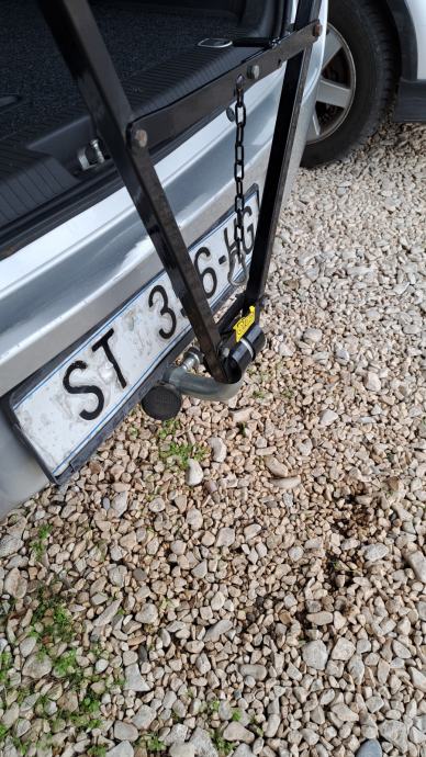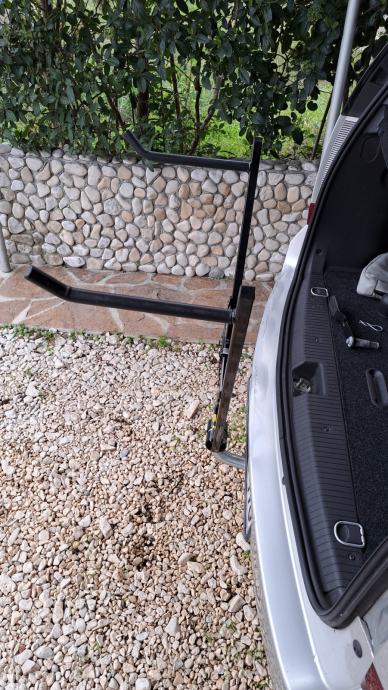 Kvalitetan, masivan nosač za bicikle na stražnjem dijelu auta koji ima Euro kuku za prikolicu ... Pričvršćuje se na kuglu nosača. Čvrst i stabilan spoj ... Prečke nosača dovoljno duge za dva bicikla ... Crne boje, kao nov ... Primopredaja Zg, St, Supetar - po dogovoru