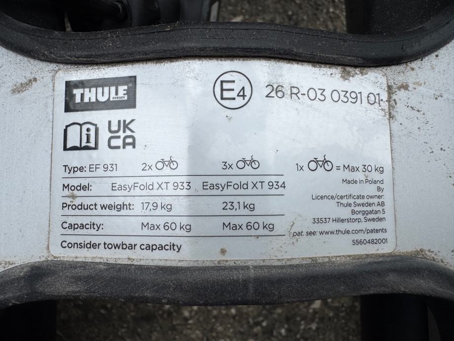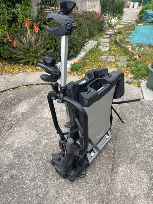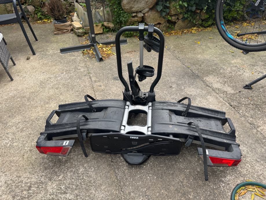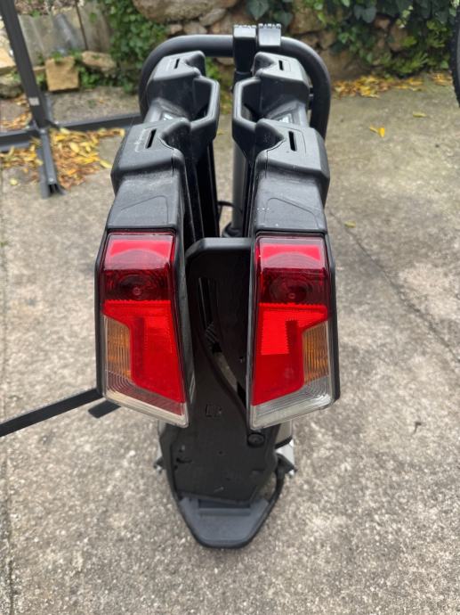Prodajem Thule EasyFold 933 nosač za 2 bicikla koji se montira na kuku vozila. Nosač se sklapa i lako pohranjuje kada nije u upotrebi, a zahvaljujući kotačićima jednostavno ga je premještati. Opremljen je integriranim svjetlima sa pokazivačima smjera i stop svjetlima. Prikladan za prijevoz različitih vrsta bicikala, uključujući e-bicikle.