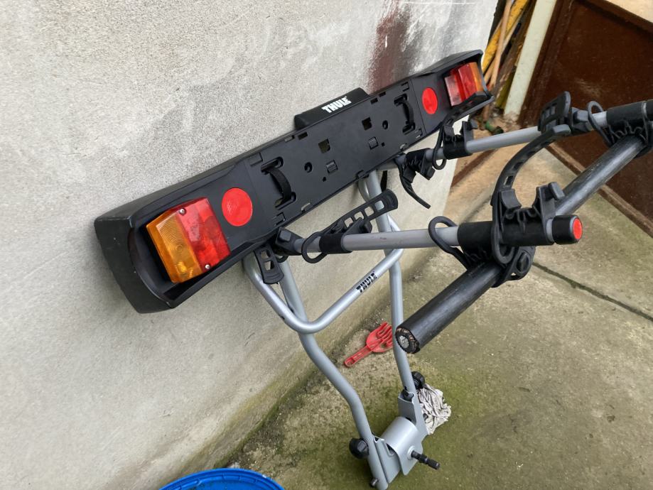 Prodajem izvrsno očuvan nosač za četiri bicikla Thule, kači se na kuku automobila, uz nosač ide i držač tablice sa signalizacijom i pripadajućom opremom.