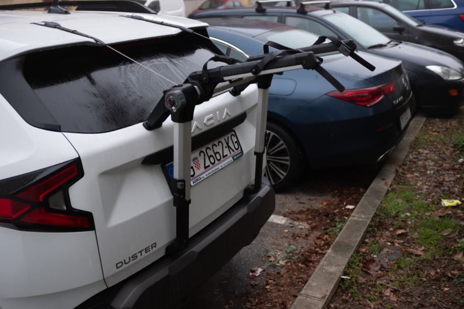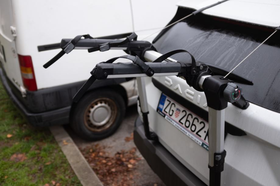 Dolazi sa svime sto dolazi i pri kupnji u trgovini (gumeni adapteri koji se mogu i nemoraju koristiti-za dodatno pricvrscivanje bicikla, traka za povezivanje bicikla, ključevi...). Nosac ima zicu koja se uvlaci u nosac kojom se mogu zakljucati bicikli za nosac kada niste u blizini auta- jako korisno.