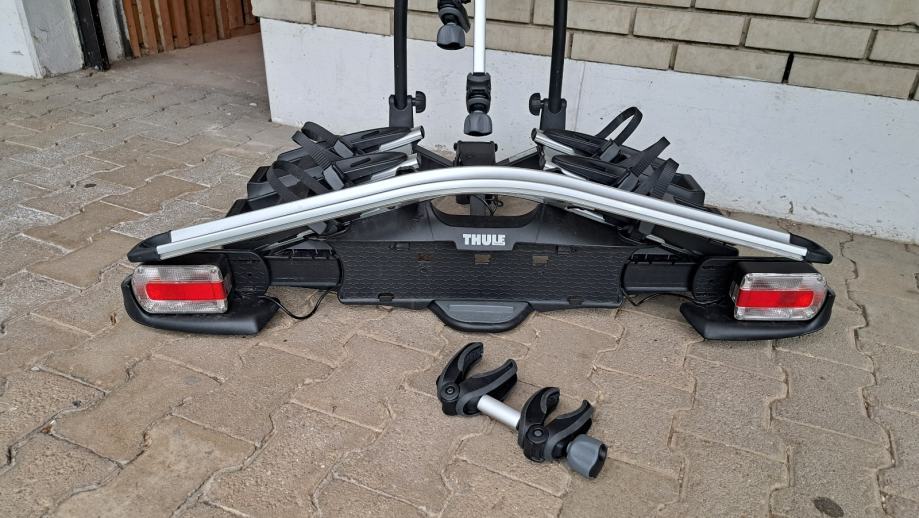 Thule nosač za 3+1 bicikl montaža na kuku, u odličnom stanju, malo korišten. Dolazi s dodatnim adapterom za četvrti bicikl. Sve se zaključava, jednostavna montaža bez alata. Uz nosač dajem adapter za 13-pinsku utičnicu za svjetla.