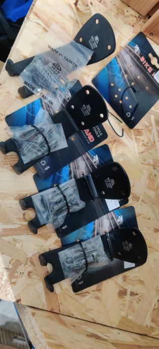 Prodajem 4 nova zidna nosača za bicikle koji se zakače pedalom na nosač. Jedan nosač je 7 €, dok komplet od 4 prodajem za 25 €.