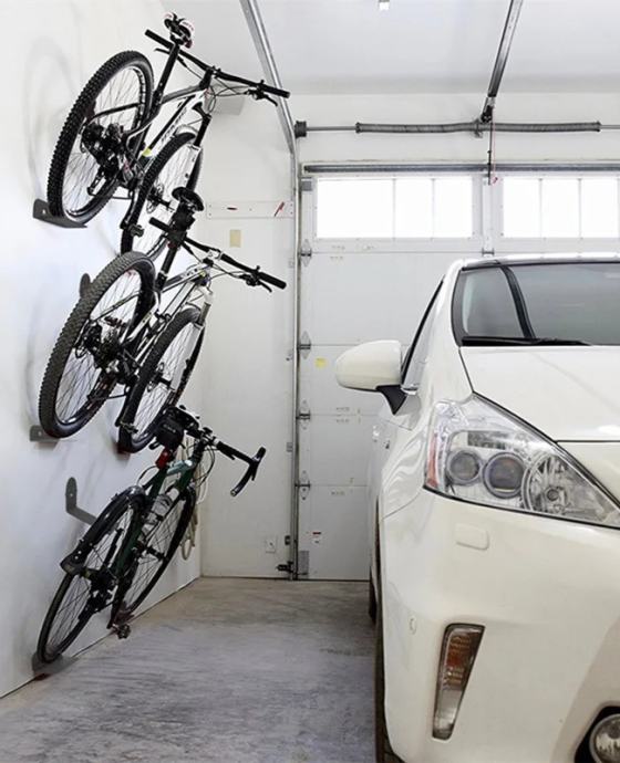 Bicikl se zakvaci na nosac pedalom i stoji objesen horizontalno uz zid.