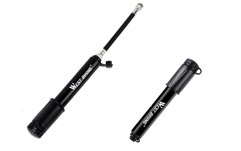 SET za bajk. Nova pumpa za bicikl 120 Psi-9Bar, izuzetno lagana, kućište aluminij , dimenzija 17x2cm, 86g, unutarnja savitljiva cijev sa završetkom za shrader i FV ventil. U setu držač i 5 samoljepljivih zakrpi+metalna turpijica. kontakt poziv ili njuškalo poruka