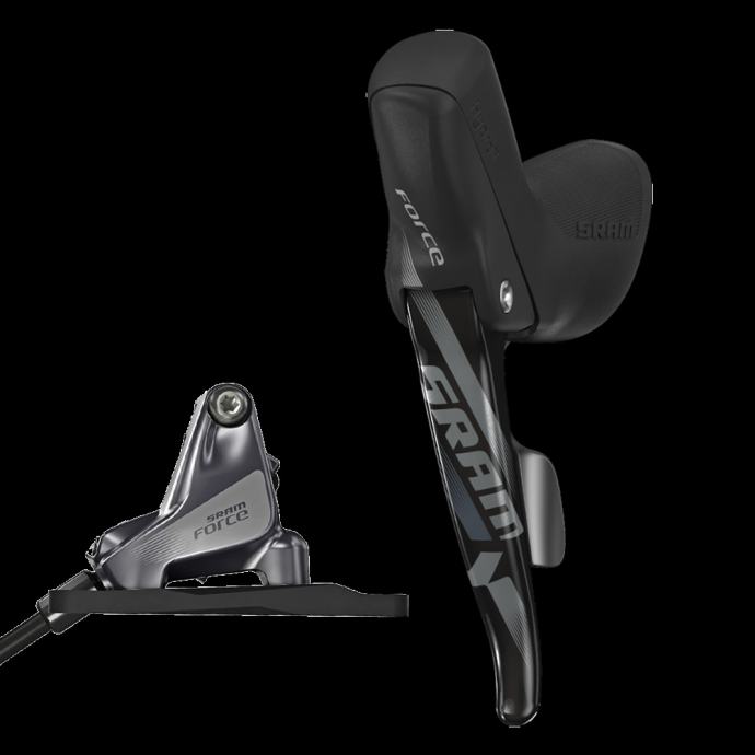 Hydraulic Disc Brake Dropper Actuator Force Left Front Brake 950mm Flat Mount Platform: FORCEColor: GreyOrientation: Left/FrontBrake type: HydraulicApplication: RoadBlade material: CarbonContact adjust: NoHose length: 950mmPad type: Steel-backed organicBracket: Flat Mount 20mm offsetReach adjust: TooledPistons: 2Piston material: Phenolic PlasticHose routing angle: Adjustable banjoCaliper body material: Forged AluminumCaliper hardware: Stainless SteelCaliper construction: 2-pieceHydraulic fluid: DOT 5.1Lever pivot: BushingLever body material: CompositeRotor type recommended: 1-piece CenterLineGPSR contact in the EU: SRAM Europe, Paasbosweg 14–16, 6862 ZS Nijkerk, Netherlands, e-mail: compliance@sram.com | www.sram.com