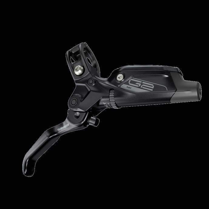Disc Brake G2 RSC (Reach, SwingLink, Contact) Aluminum Lever Diffusion Black Front 950mm Hose (includes MMX Clamp, Rotor/Bracket sold separately) A2 Platform: G2Color: Diffusion BlackOrientation: FrontBrake type: HydraulicApplication: MTBBlade material: Aluminum - StampedContact adjust: YesRecommended MMX clamp: Stainless bolt, blk clmpHose length: 950mmPad type: Steel-backed organicBracket: Direct mount DIRReach adjust: Tool-freeRecommended discrete clamp: Hinge - StainlessPistons: 4Piston material: Phenolic PlasticHose routing angle: Adjustable banjoCaliper body material: Forged AluminumCaliper hardware: Stainless SteelCaliper construction: 2-pieceHydraulic fluid: DOT 5.1Lever pivot: BushingLever body material: Forged AluminumRotor type recommended: 1-piece CenterLineGPSR contact in the EU: SRAM Europe, Paasbosweg 14–16, 6862 ZS Nijkerk, Netherlands, e-mail: compliance@sram.com | www.sram.com