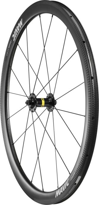 Platform: COSMIC SOrientation: FrontSize: 700cRim construction: 100% carbon fiberRim depth: 40 mmTire compatibility: UST Tubeless ReadyNipple material: SteelNipple anti-rotation: Steel, ABS, blackSpoke count: 18 front, 24 rearSpoke pattern: radial (front) - crossed 2 (rear)Spoke type: Bent radius, round (front and rear)Brake compatibility: Rim brakeAxle type: Front 9x100 mm / Rear 9x130 mm - Quick release onlyAxle material: AluminumBearings: QRM automatic setting - sealed cartridgeDelivered with: User guide, Quick release level 2, Carbon brake pads with each wheel, Rim tape mounted on wheel, UST valve not mounted on wheelGPSR contact in the EU: MAVIC SAS, 14 Chemin des Croiselets – ZA des Croiselets, 74370 Épagny Metz-Tessy, France, e-mail: info@mavic.com | www.mavic.com