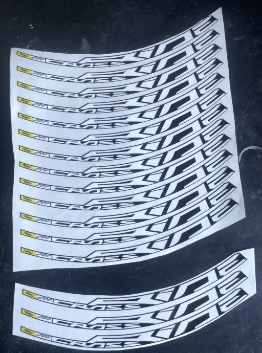 Naljepnice su rađene uglavnom za 26" kotače, ali s obzirom da su elastične mogu se koristiti i za 29 i 27.5" kotače. Preko svih naljepnica je laminacija ( mat ili sjajna ) i kao takve su otporne na veremenske uvjete, grebanje i kemikalije.
