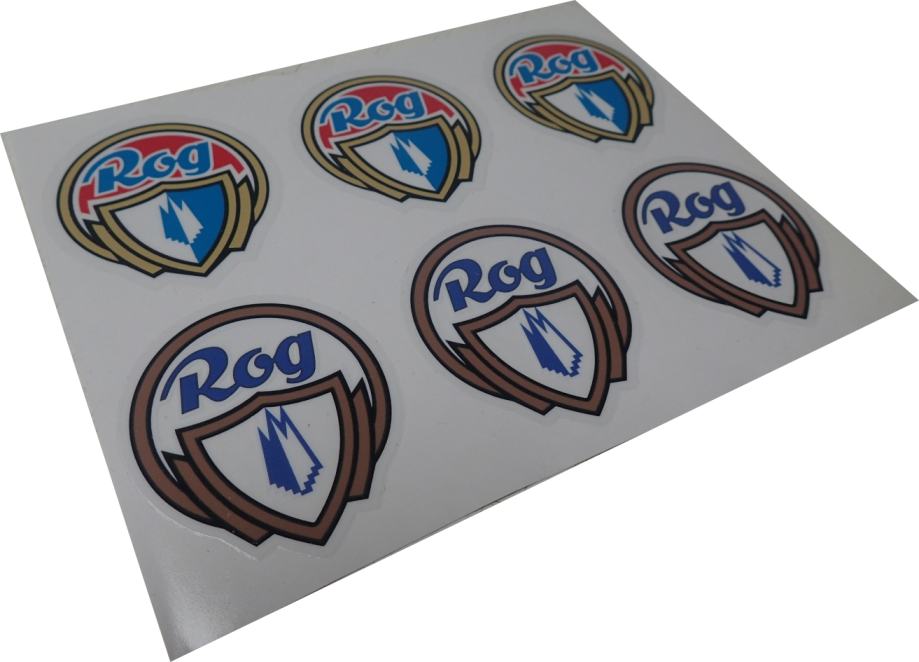 Naljepnice su otisnute na prozirnoj PVC foliji ( osim loga ROG koji je otisnut na srebrno sjajnoj - kromiranoj foliji ili prozirnoj )