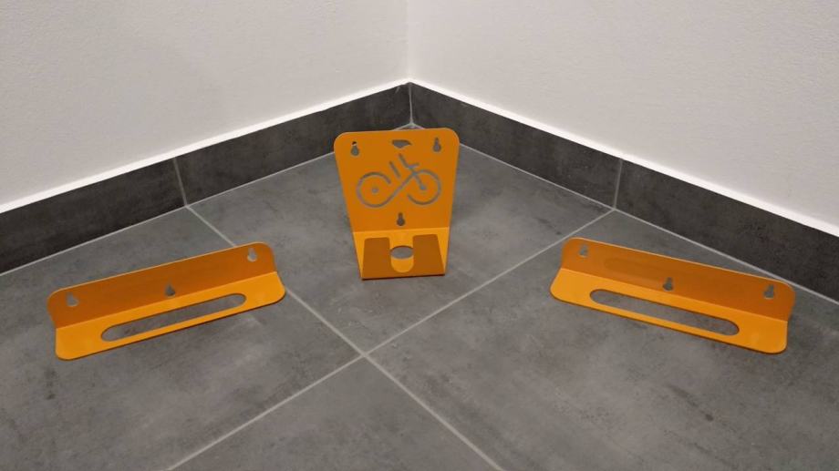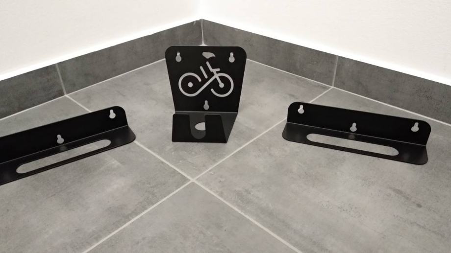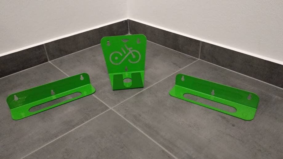 Izrađen je od tri dijela: prvi dio sa logom bicikla na koji se postavlja pedala i druga dva na koje se postavljaju kotači bicikala i time omogućuju da se ne zaprlja zid i ono NAJVAŽNIJE ne ostecuje se boja rame bicikla.