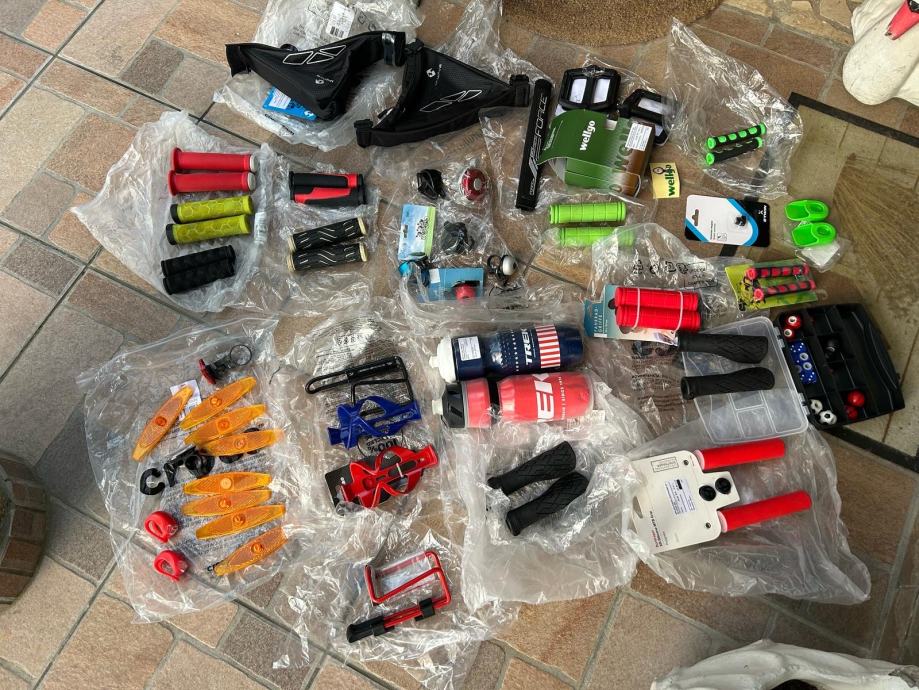 Oprema za bicikl-gripovi-ručke-navlake-torbice-pedale-boce-TREK-zvona-nosači za boce-ostala oprema prikazana na slikama! NOVO! ZAPAKIRANO! Cijena 6€ po komadu! Upitati na 091/978-9684 Poziv,sms,može i upit inbox! (Moguća dostava Zagreb,Lepoglava,Ivanec,Varaždin!)