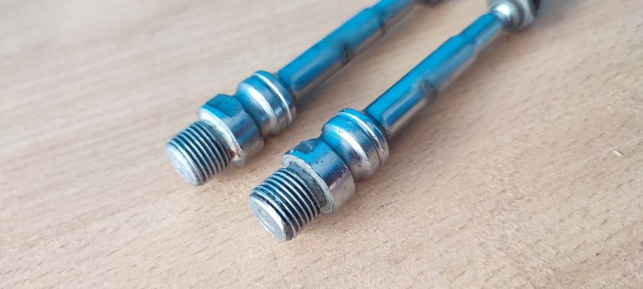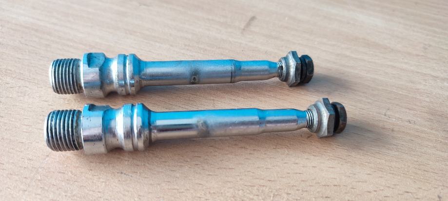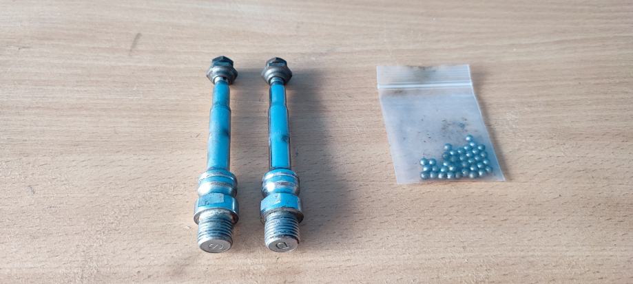 Na prodaju navedene osovine,kuglica nea za oba seta,ali ovo je top za imat za rezervne djelove,vjerojtno pasu i na campy pedale iz tog vremena :)