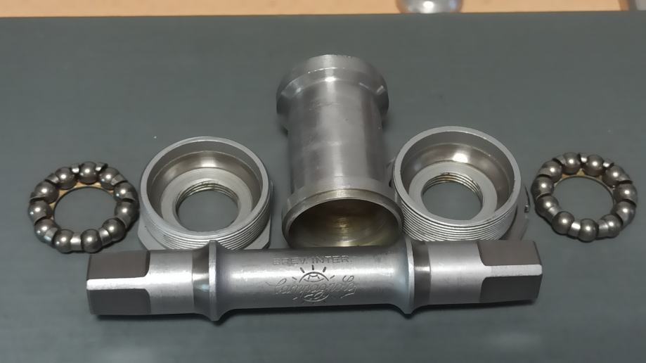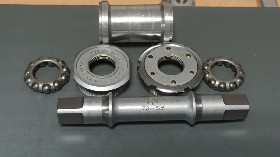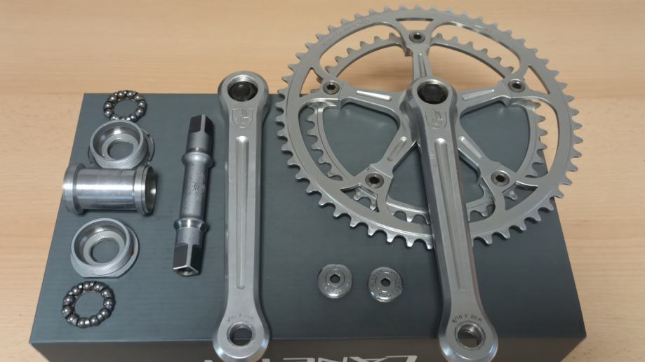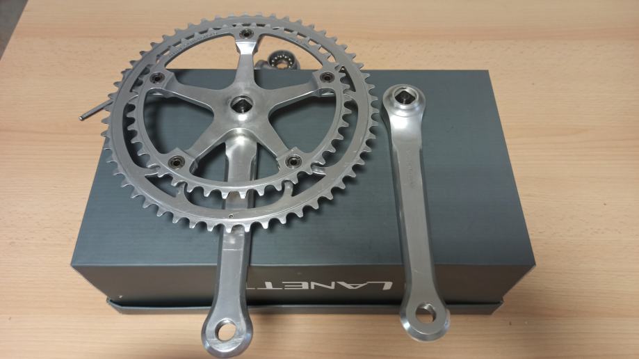 Crankset Model 1049/a -594 gr.1974. - 1987. BCD 144 - BB konus lager Nuovo Record Model 1046/A - 299 gr. Late 1960. - Late 1980. velobase.com/ imate slike - Ital 36 x 24 F brev. inter - osovina 115mm BREV. INTER logo globe 70 - SS stanje 9/10 - samo u kompletu, dust cape,čelik crom, vijci, aluminium/zaštita osovine, 5 - 6 - 7- 8 speed kranz ili kazeta, frikcion/Index , slike detalja na zahtjev šaljem na mob. - Miro 098 529 693 - velogrga.1949@gmail.com