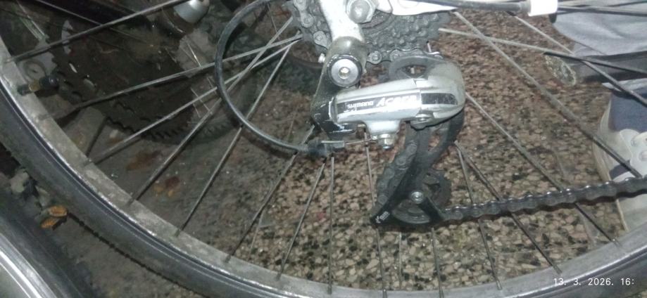 komplet djelovi za bicikli osim rame okvir pukao je i neupotrebljiv ,sve ostalo srednji pogon zadnji pogon kočnice shimano kotači duple felge u prednjem točku dinamo
