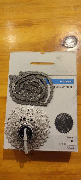 Shimano Ultegra CS-R101 12 brzina 11-30 zuba.U kompletu sa kezetom ide i lanac Shimano CN-M8100 +quick link.