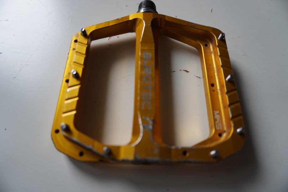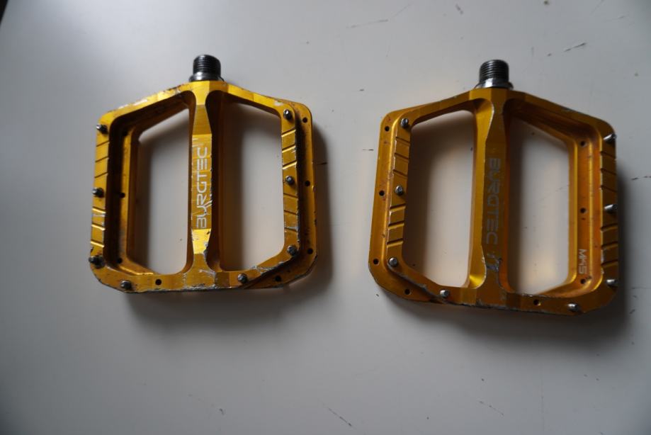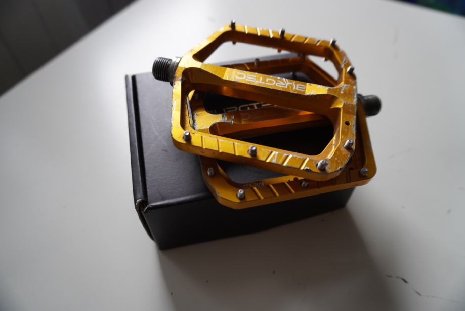 Prodaju se pedale iz naslova. Engleski proizvođač vrhunske opreme. Pedale su kvalitetne izvedbe i efektne boje. Vožene jednu sezonu tako da ima vidljivih ogrebotina, međutim nema oštećenja koje utječu na sam rad istih.