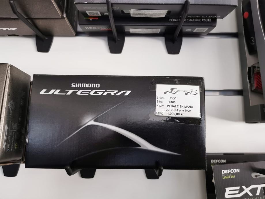 Ultra lagane pedale Ultegra R8000 Carbon SPD-SL od samo 248g su se razvile iz serije 6800. Proizvedene su da odražavaju krutost R8000 Hollowtech II pogona. Pedale s karbonskim slojem također posjeduju ekstra široku platformu i smanjenu visinu stoga kako bi bili sigurni da ćete prenijeti svaki wat preko vašeg prijenosa prema naprijed.