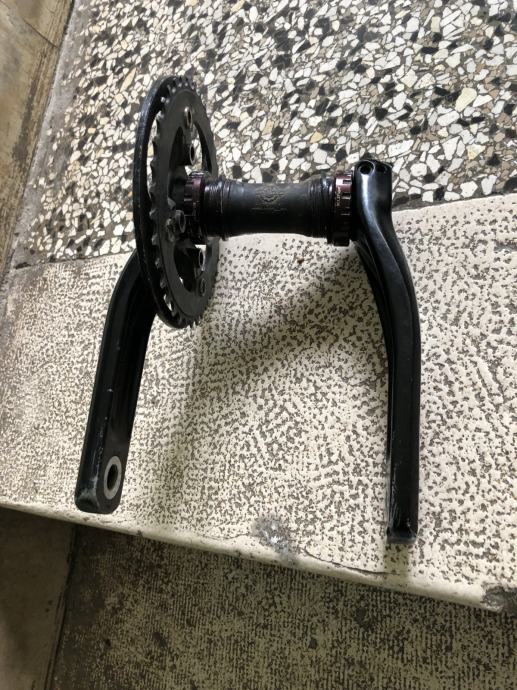 Ima povrsinskih ostecenja ali radi bez problema, masivan dh/freeride pogon, kurble 165 mm. Lancanik 36 zuba. Na poklon fsa bottom bracket, koristen, ociscen i podmazan. Nije besprijekoran ali moze posluziti.