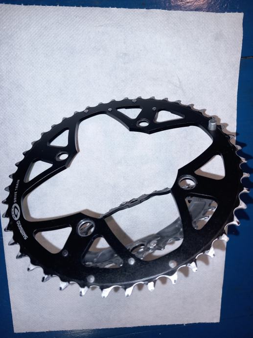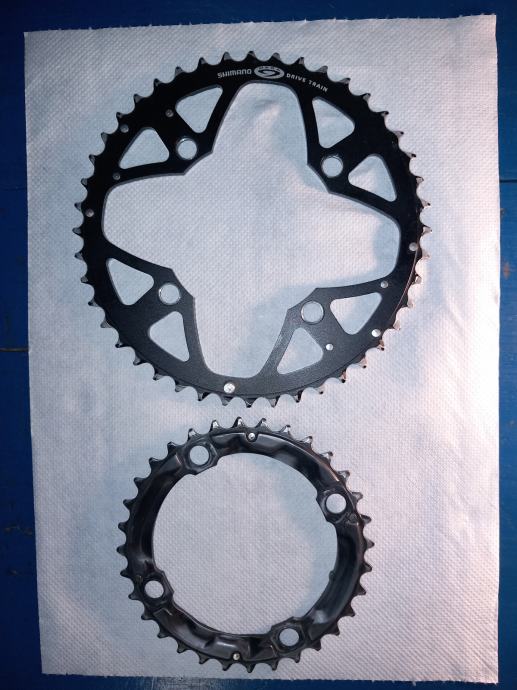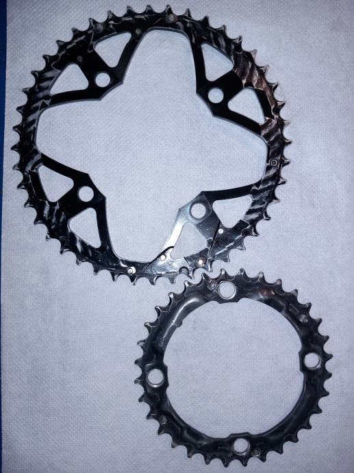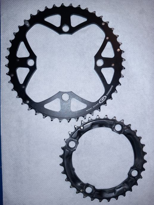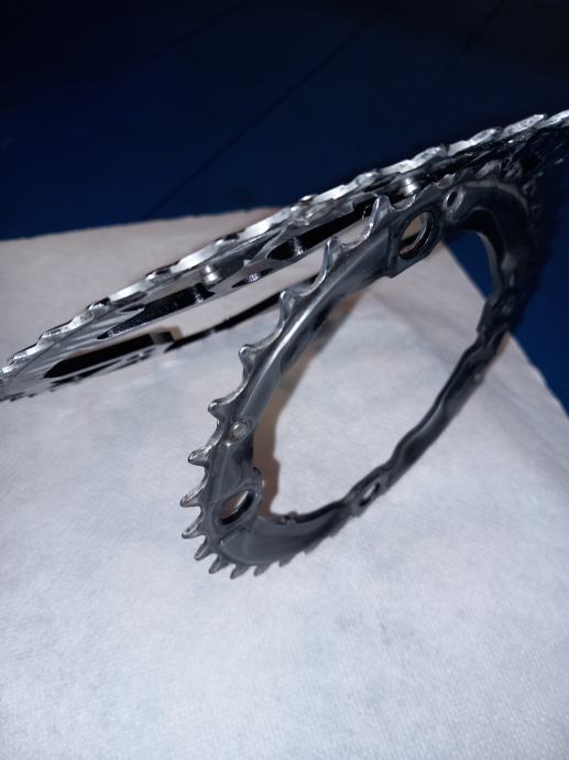 Prodajem prednji MTB lančanik SHIMANO DEORE XT 44T (veliki, vrlo dobro stanje) i 32T (srednji, dobro stanje). Cijena se odnosi na oba lančanika zajedno.