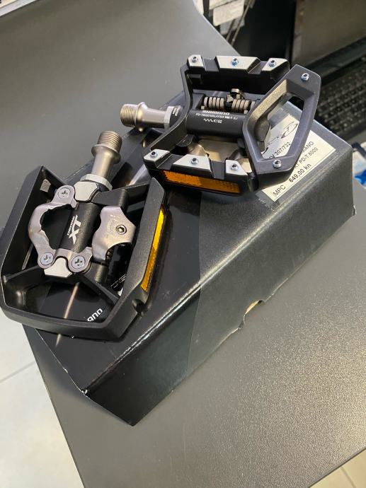 Shimano PD-T8000s su visokokvalitetne pedale za touring i svakodnevnu vožnju. S jedne strane imaju SPD vez, s druge se strane mogu koristiti kao ravna pedala. Otvoreni mehanizam za vezivanje osigurava dobru otpornost na nečistoću.Imate izbor: klik ili platformu. Posebno dizajnirana za touring i trekking bicikle, ova dvojna pedala naravno ima SPD klik mehanizam. Na taj način možete učinkovito iskoristiti svoju snagu i optimizirati svoje pokrete. Ako ne želite kliknuti na pedale i izaći iz njih kada vozite gradom ili ako jednostavno volite nositi standardne cipele, možete koristiti širu platformu pedale. Na PD-T8000, ova platforma dolazi s 8 čeličnih pinova za dobar zahvat na pedali. Pedale se nalaze u trgovini Bicikle Fržop u Vodicama. Mogućnost dostave. Mogućnost plaćanja karticom i na rate.