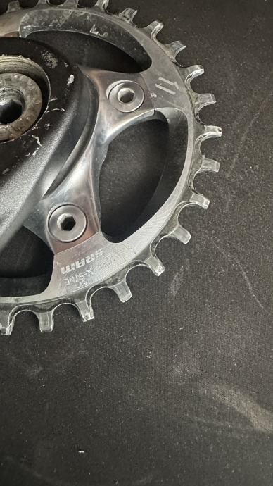 SRAM SX pogon s vidljivim tragovima korištenja, ali potpuno funkcionalan i spreman za daljnju vožnju.