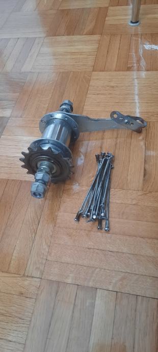 Zadnja glavčina kotaca, torpedo (kontra-kočnica) za kotač 12', za djeciji bicikl, 16 rupa (žbica). Žbice u kompletu sa glavčinom. Potrebno samo namontirati na obruč sa gumom 12'.