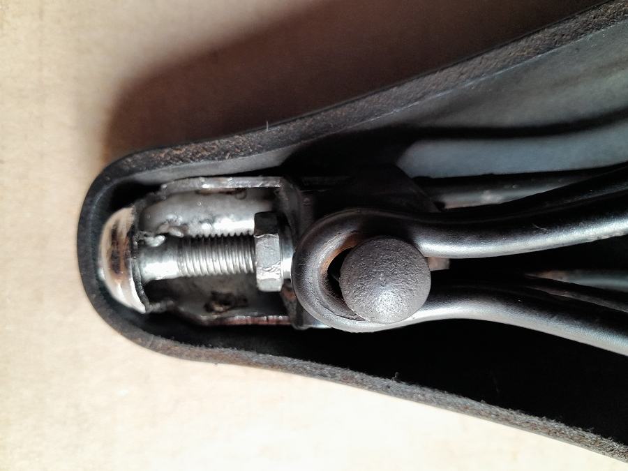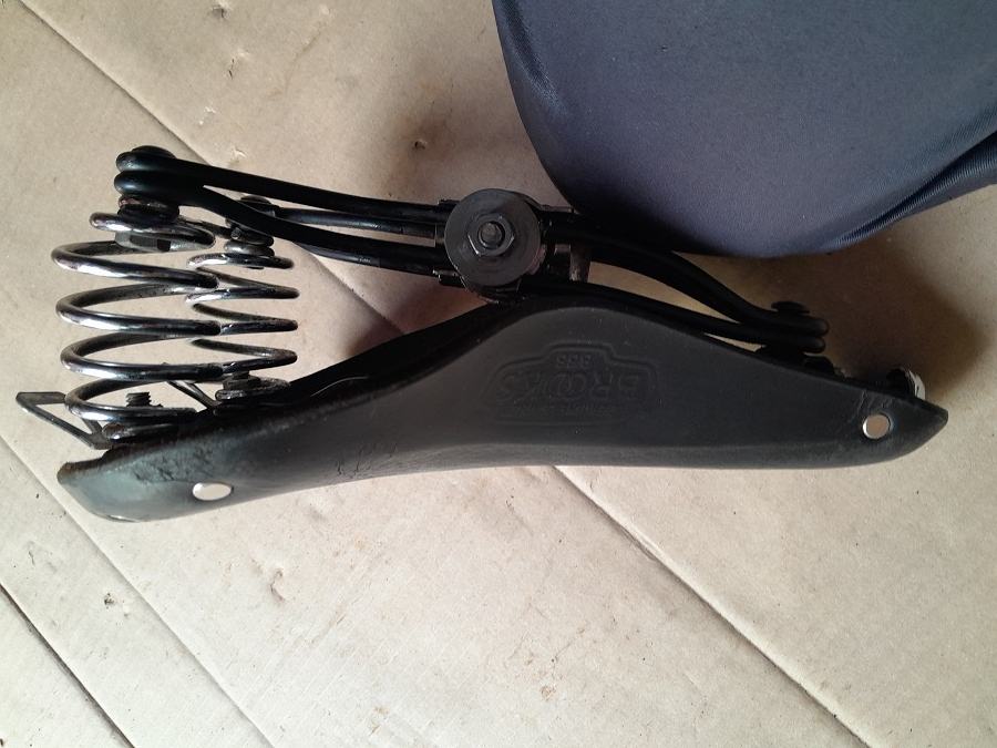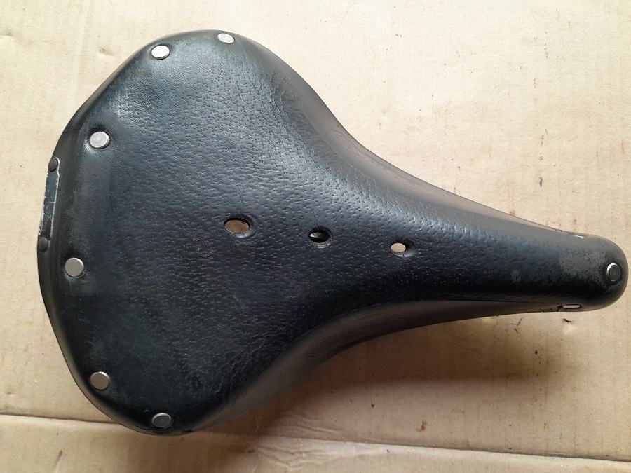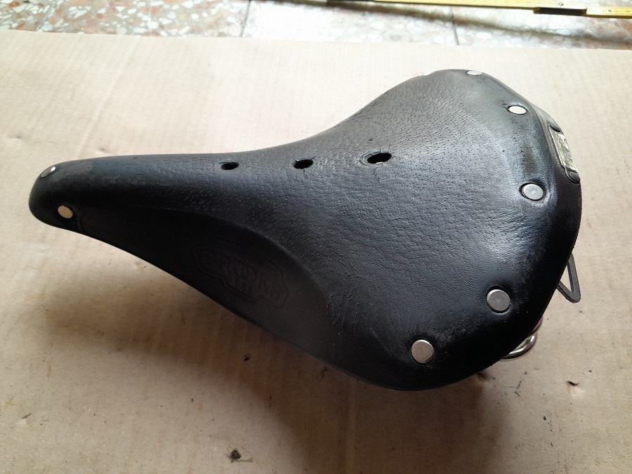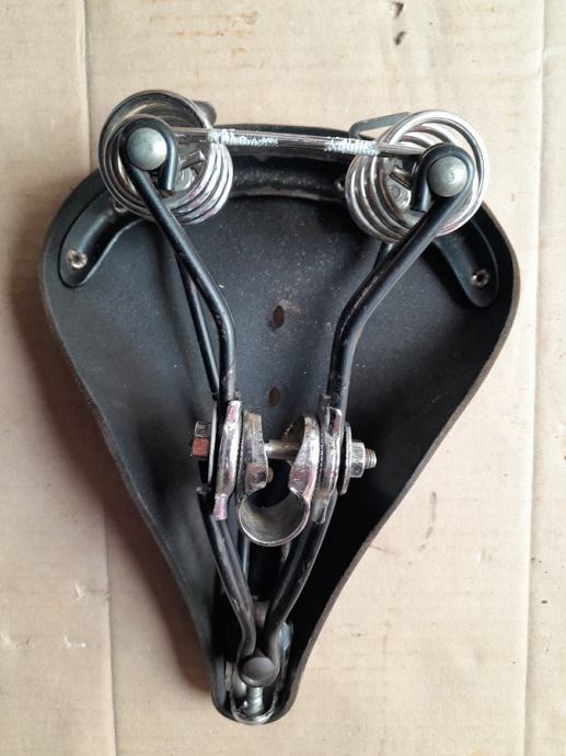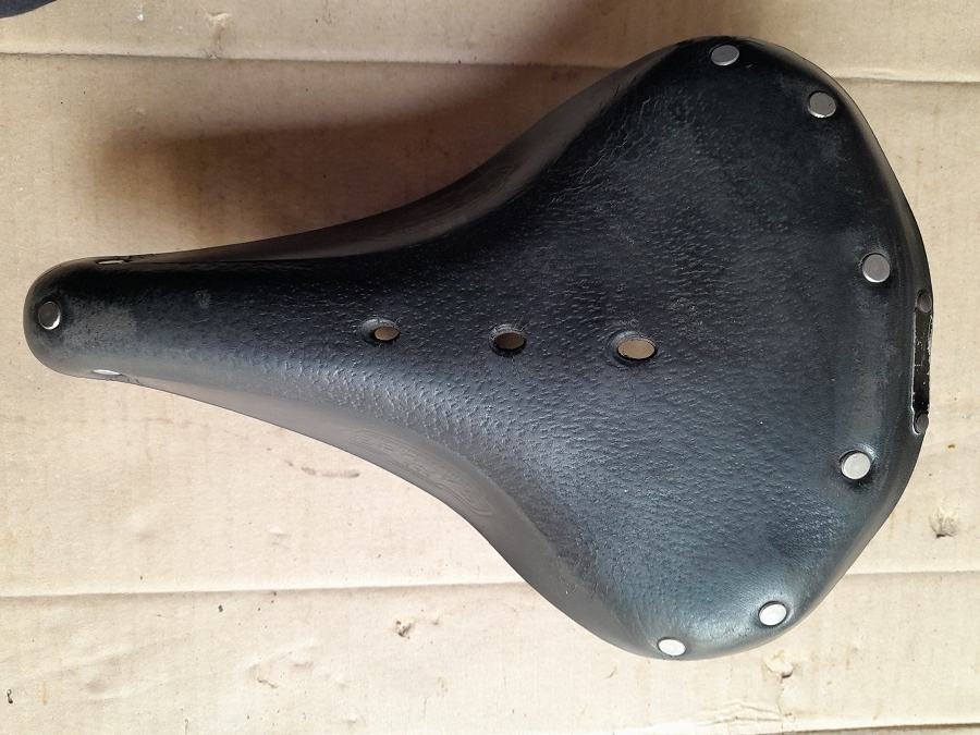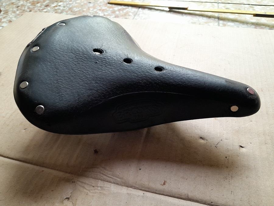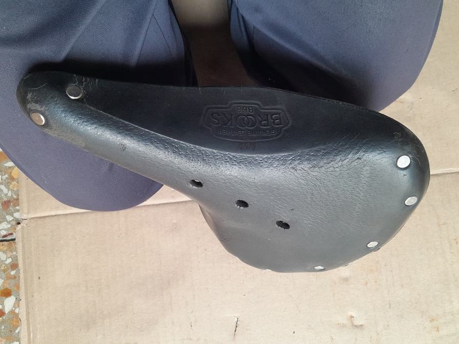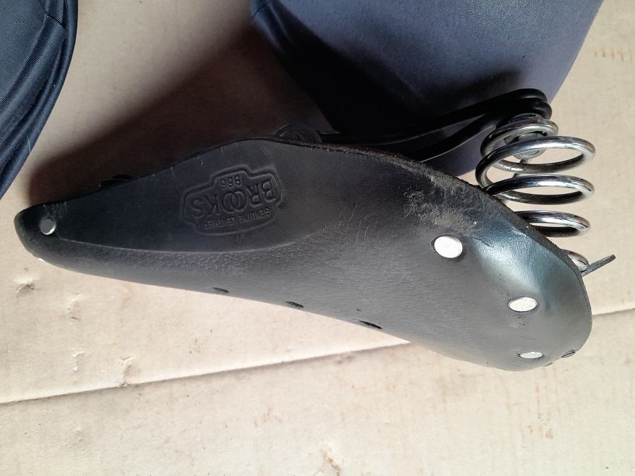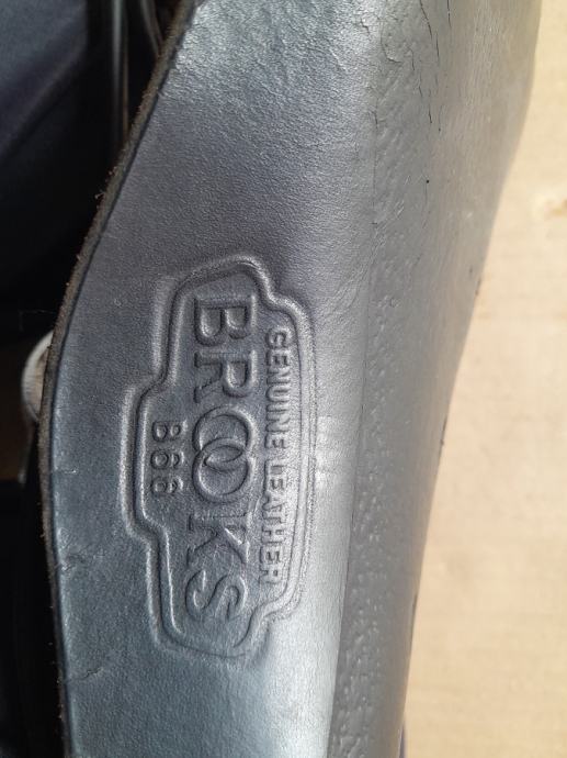 Sic za bicikl, Brooks B66,rabljen,vidljivi tragovi korištenja,koža dobra,nije ispucala i nije deformirana,nitne nisu dirane,znači sve je orginalno,i dobro izgleda,ali puknut čelični nosač sa jedne strane(vidljivo na slikama),mislim da se to može riješiti zavarivanjem i koristiti i dalje,šaljem pouzećem na račun kupca,30 eura