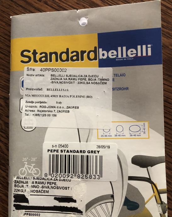 Prodaje se djecja sjedalica za bicikl marke Pepe s oblozenim sjedistem tezine do 22kg. Sjedalica je ispravna i u funkciji.