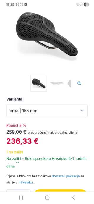 Sjedalo je širine 155 mm. Novo.