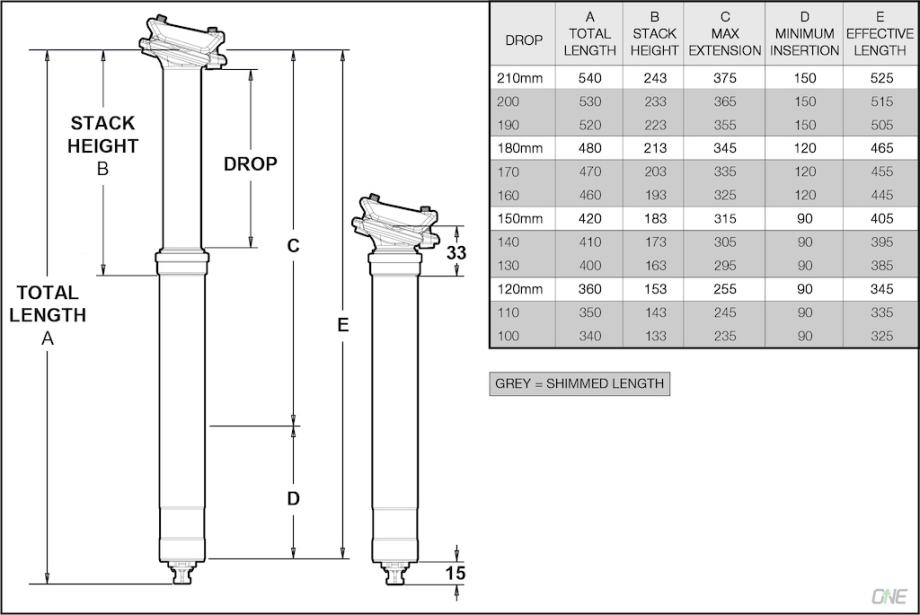 OneUp dropper post V2 31.6mm - 210mm + Lever NOVO