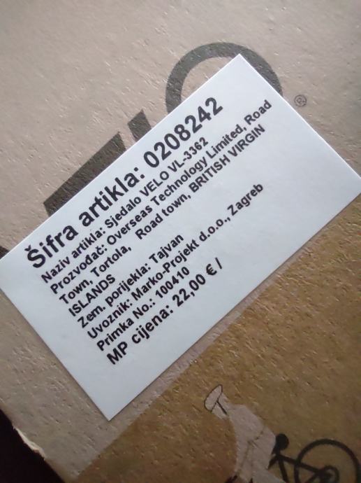 Sjedalo Velo, novo, voženo jedan sat - ne odgovara
