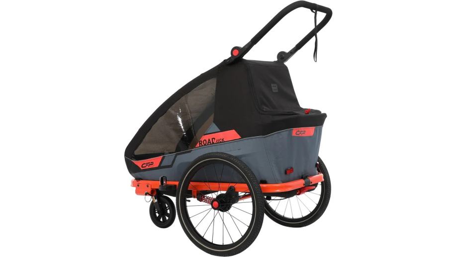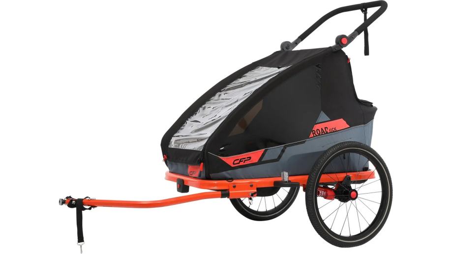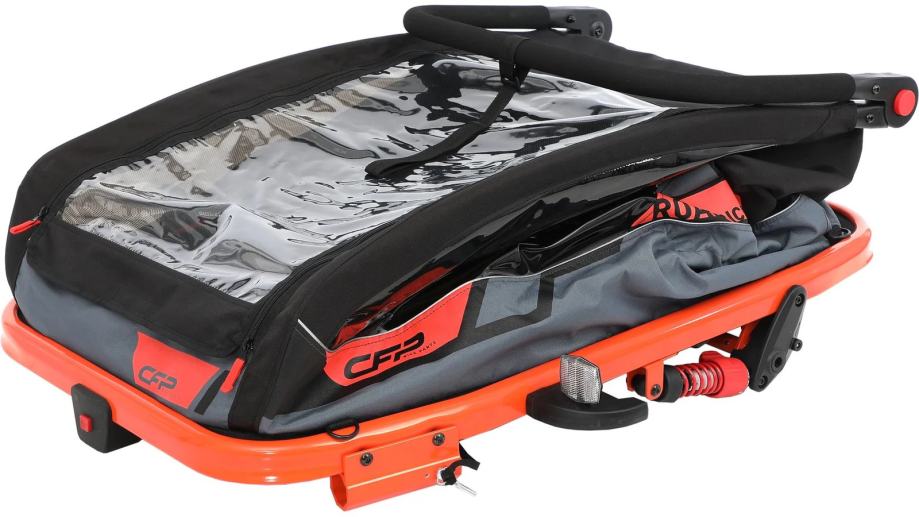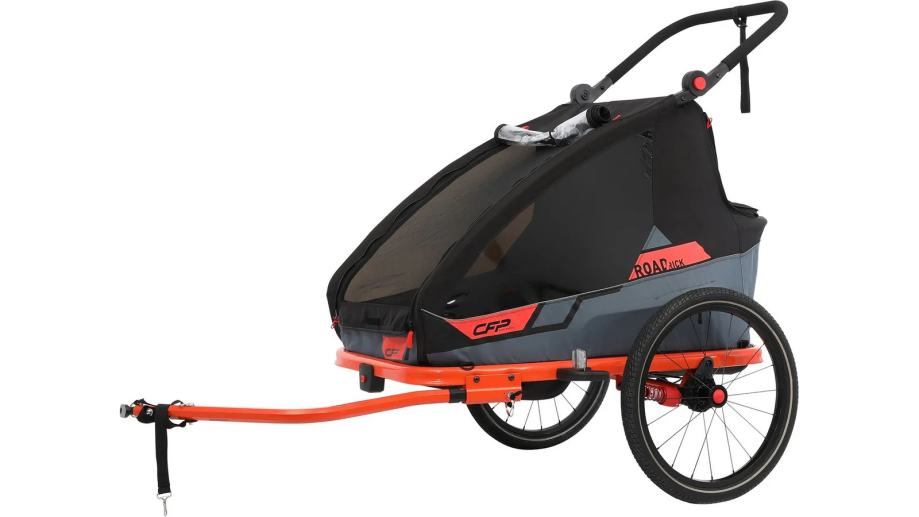 CFP Road Rick dječja prikolica nudi prvoklasnu sigurnost i udobnost za do dvoje djece u dobi do cca. 6 godina. Sa svojim izdržljivim sigurnosnim pojasom od 5 točaka osigurava da su vaši mali putnici sigurni i sigurni. Integrirana parkirna kočnica osigurava dodatnu sigurnost kada se zaustavite. Podešeni ovjes dječje prikolice Road Rick postavlja novi standard u smislu udobnosti vožnje. Stupanj tvrdoće ovjesa može se prilagoditi po potrebi kako bi se osigurala nježna i ugodna vožnja za vaše male putnike. Bilo na neravnim cestama ili glatkom terenu – ova prikolica osigurava optimalan ovjes i mirno iskustvo vožnje. Konstrukcija Road Ricka prilagođena korisniku omogućuje vam da se lako preklopite i razvijate, što ga čini praktičnim suputnikom u pokretu. Prikolica se može pohraniti brzo i jednostavno ako se ne koristi. S prikolicom za djecu Road Rick, vi i vaša djeca doživljavate nezaboravne avanture u prirodi bez žrtvovanja sigurnosti, udobnosti i praktičnog rukovanja. Učinite svaku vožnju posebnim iskustvom za cijelu obitelj!