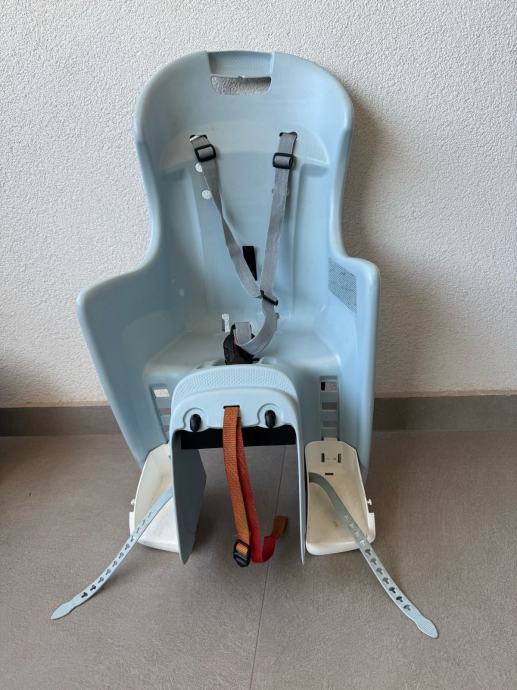 Prodajem dječju biciklističku sjedalicu marke Polisport, svjetloplave boje. Sjedalica se montira na stražnji dio bicikla i opremljena je sigurnosnim remenom s kopčom te osloncima za noge. Dolazi s pratećim remenom za pričvršćivanje na okvir bicikla.