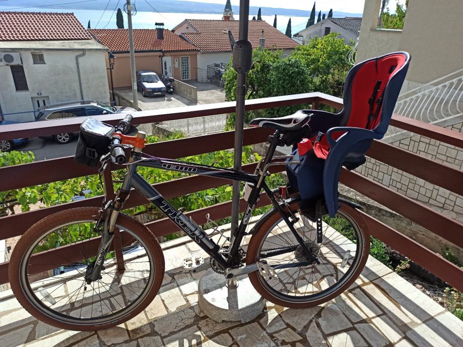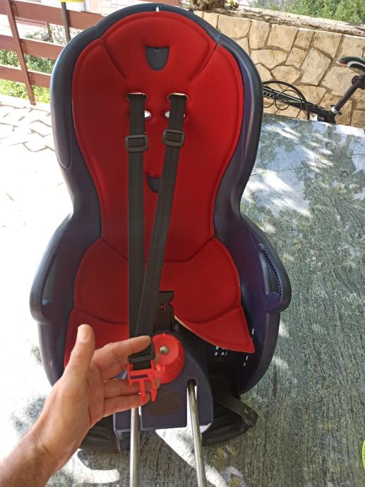 Prodajem sjedalicu za bicikl, za dijete do 22 kg. Ima kotačić kojim se podešava nagib kada dijete zaspe, dosta zgodno. Korištena je za dva djeteta. Nama je pukao dio plastike kojom se remen kopča ali mi smo ju koristili tako bez problema, moguće je naći na internetu taj dio. Stolica se nalazi u Selcu, mogućnost dostave Rijeka ili Senj..