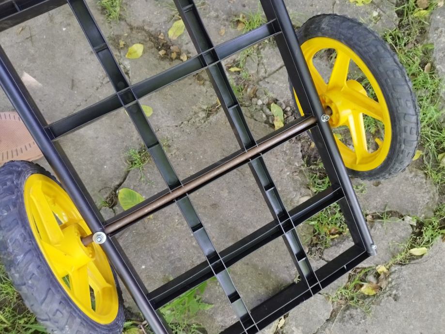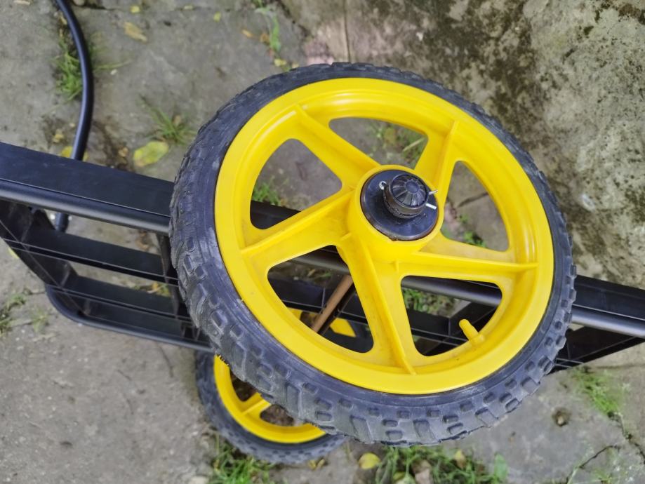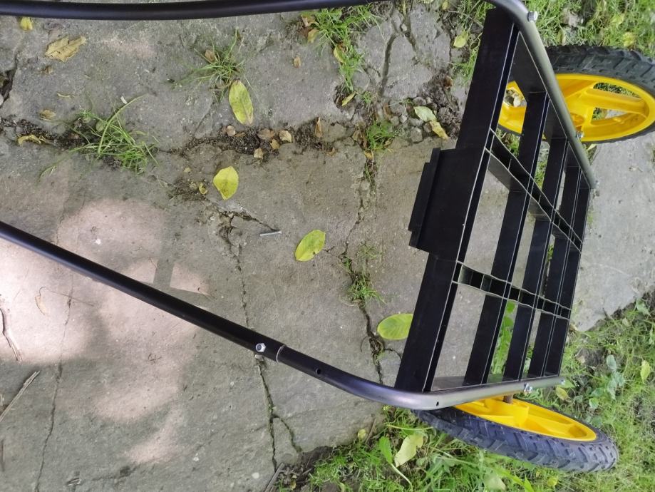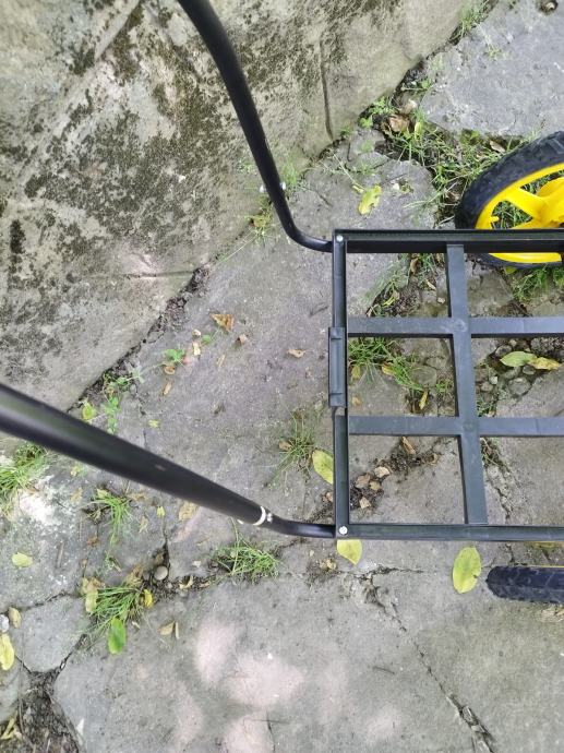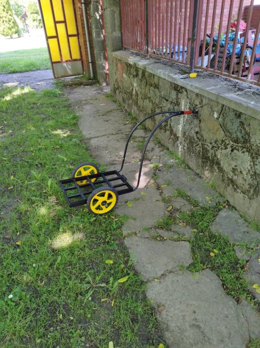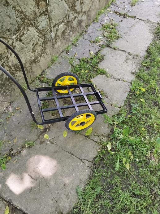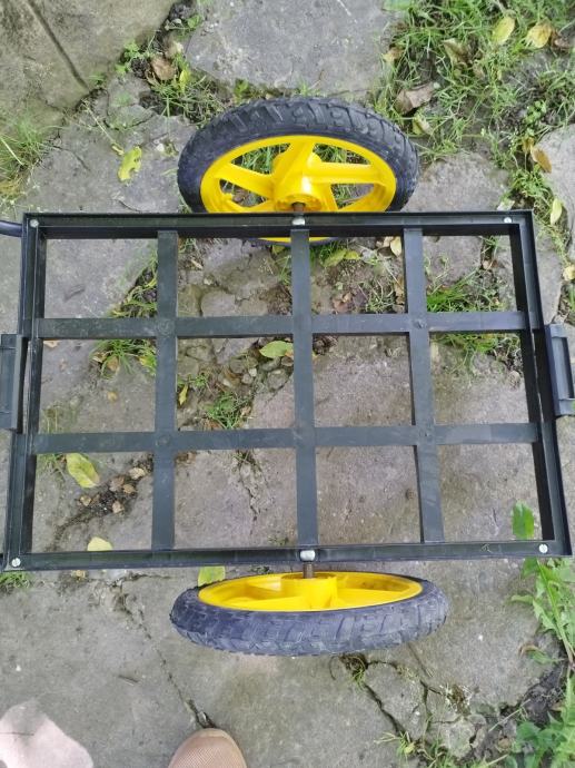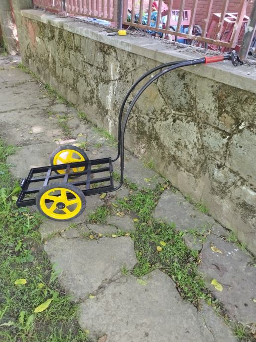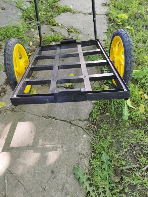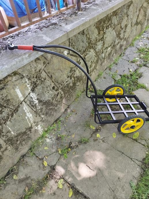 Za tržnicu,šoping ili za prijevoz goriva do čamca mala (noseći prostor za sanduk 60*40cm) izuzetno lagana( 2kg težine ) sa točkovima fi 30cm, potpuno rasklopiva .Može biti za bicikl (priključnica)a može biti i pješačka gurajuća.