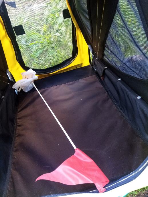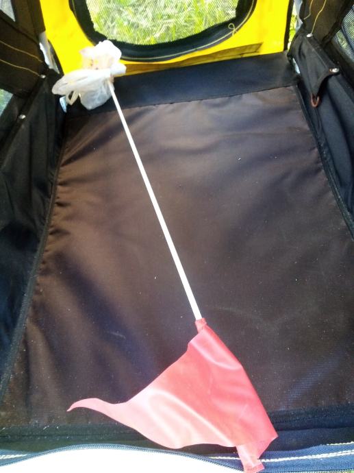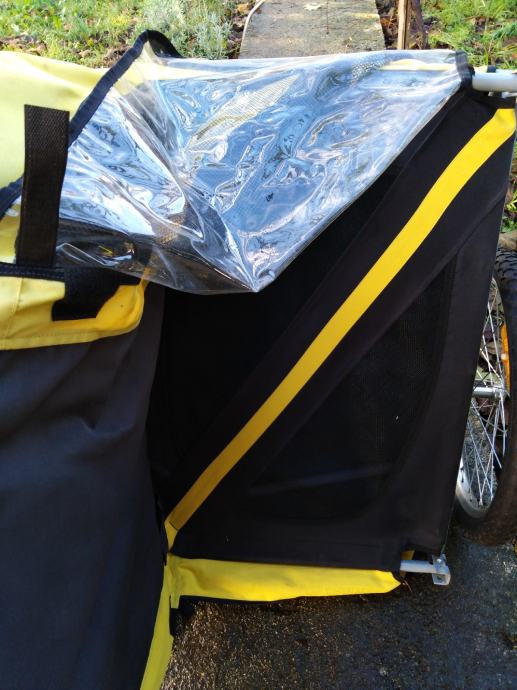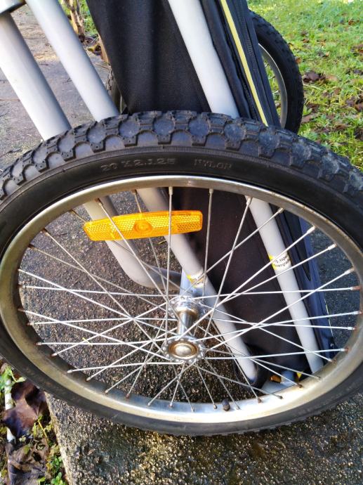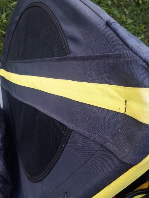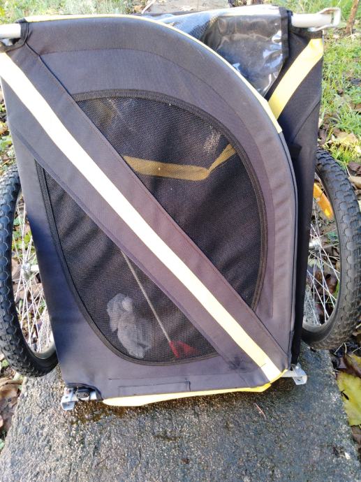 Prodaje se prikolica za biciklu. Širina je 58 x 80 .Širina sa kolima je 70 cm. Visina je 63 cm.