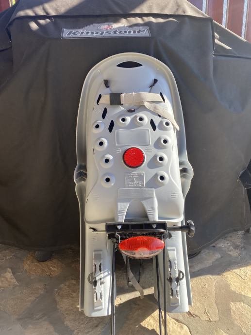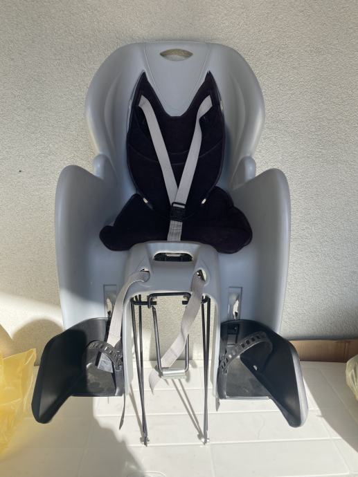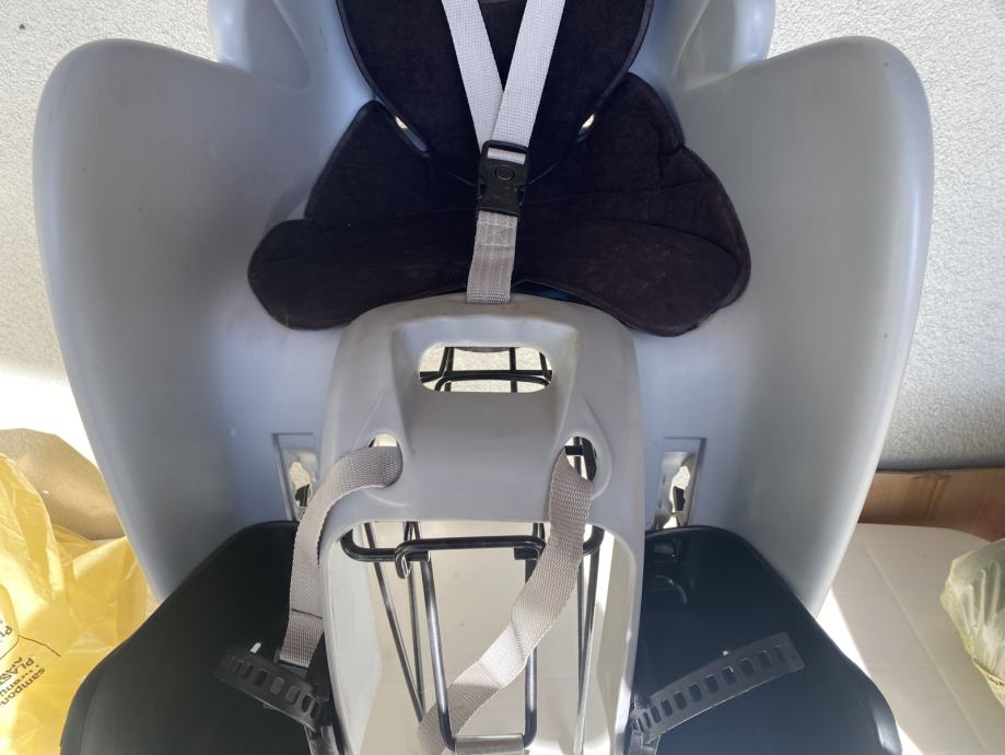 Prodajem očuvanu, ispravnu sivo-crnu dječju sjedalicu (do 22 kg) za bicikl. Montira se na stražnju stranu bicikla direktno na stražnji nosač prtljage. Malo korištena. Sjedalica se prodaje bez stražnjeg nosača prtljage. Nosač prtljage (vidi se na nekim slikama) nije obuhvaćen ovom ponudom.