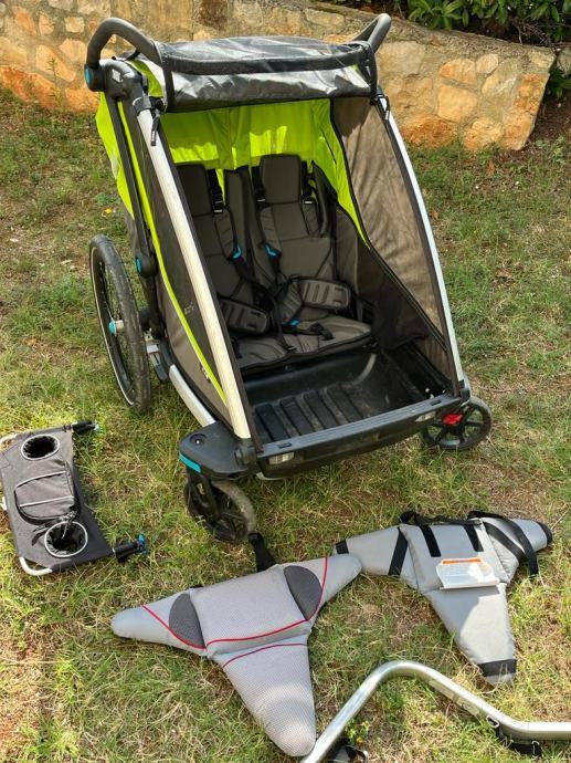 Thule Chariot Cab 2 zelena sportska dječja kolica i prikolica za bicikl za dvoje djece (4u1) sa adapterima za vožnju bicikla i adaprerima za šetnju (novo 1170€)