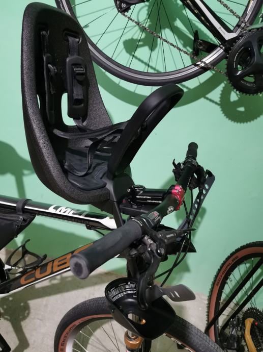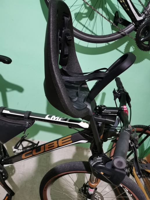 Sjedalica je crne boje i dolazi sa adapterom za montažu na stup volana prednjih vila.