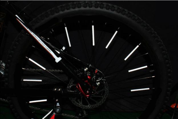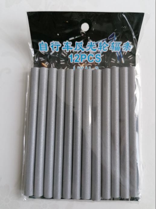Pakovanje sa 12 komada reflektirajućih svjetlećih reflektora za na žbice kotača za bicikl, koje reflektiraju svijetlost i osvjetljavaju kako kotač tako i cijeli bicikl. Znatno povećavaju sigurnost vozača bicikla i osvjetljavaju bicikl pri vožnji noću.
